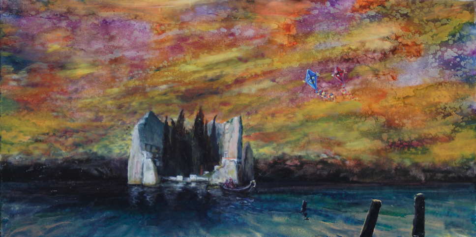 Diether MünchgesangFlucht von der ToteninselÖl / Lw 2005 50 x 100 cm